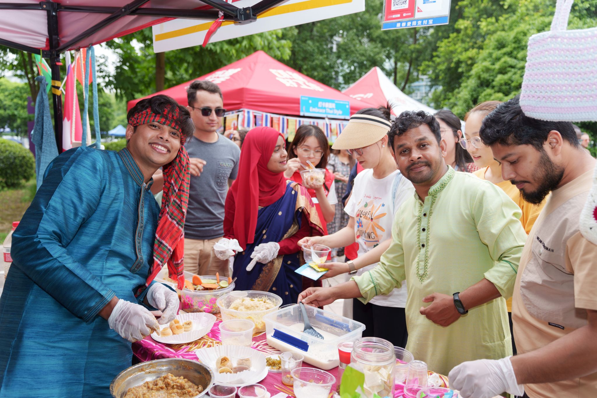 “今天的活动超棒!我们展示了泰国的芒果糯米饭、泰式奶茶、清凉粉、大象包等特色美食与文化元素,还为大家取泰文名字。现场各国帐篷林立,大家相互交流、学习文化,收获满满!这是我在温大最珍贵的回忆之一!”来自泰国的职工林永乐兴奋地分享着。