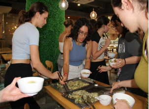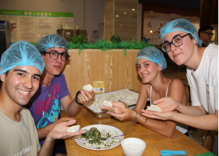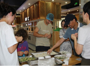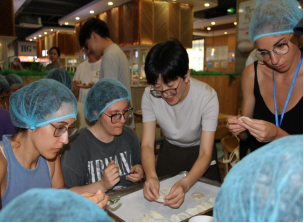 若说书法是“纸上的艺术”,那饺子便是“舌尖上的中国”。职工们围在案板前,跟着食堂大厨一步步学习如何包出好看的饺子。同学们上手都非常快,不仅很快包出了传统的饺子形状,有人还把饺子捏成了“小元宝”,还有人创新做出了“意式褶皱款”。一顿饺子宴,不仅让职工们品尝到了中国味道,更感受到了中国人“以食为媒”的待客之道与团圆文化。