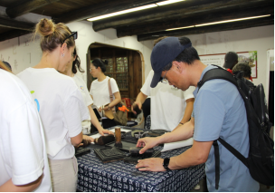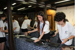 瑞安市东源村的木活字印刷术距今已有八百多年的历史,被称为中国印刷术的活化石。在印刷展示馆,跟随着讲解员的讲解演示,蘸墨、铺纸、拓印,揭纸,员工们动手体验了雕版印刷的全过程。在木活字研学馆,非遗传承人现场雕刻,帮所有职工挑选出他们的汉语姓名,结合一幅幅雕版图案,一个个带有各自姓名的祝福帖就被印刷出来了。“原来在古腾堡印刷术之前,中国早就有了这样精密的印刷技术!”本次研学活动,让职工们亲手触摸到中国古代工匠的智慧,更理解了“文明因交流而互鉴”的深意。