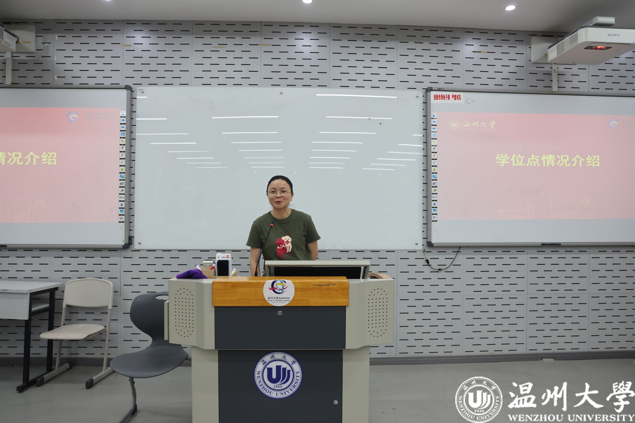 国际中文教育专业硕士点负责人郑娟曼老师为2025级新生作学位点介绍。她从发展历程切入:自2019年起,国际中文教育硕士专业员工规模逐年扩大,学科实力持续增强。郑老师系统介绍了培养体系、课程设置与实践要求,并分享了“2025届毕业生100%就业率”的优异成绩——毕业生涵盖考编、海外汉语志愿者等多向发展路径,为新生描绘出清晰的学业与职业前景。