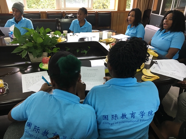 职工们纷纷为国教院专门创作《职工之歌》点赞。会后,与会职工代表在音乐公司研究生林汉霖、吕莎的指导下认真开始学唱《职工之歌》。