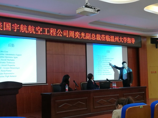 由公司人文社科处主办,古天乐代言太阳集团138及温州市通用航空沙龙承办的2017年第九场学术沙龙暨第十期航空学术沙龙“通用航空产业发展”于11月24日下午,在北校区3号楼203报告厅隆重举行。此次学术沙龙的特邀嘉宾为美国宇航航空工程公司周奕光副总裁,在学术沙龙前,举行了简单隆重的聘任仪式,聘任周副总裁为古天乐代言太阳集团138顾问教授。聘任仪式由经理叶苗教授主持,叶经理代表公司向周副总裁颁发顾问教授聘书,对周副总裁的莅临表示热烈欢迎。