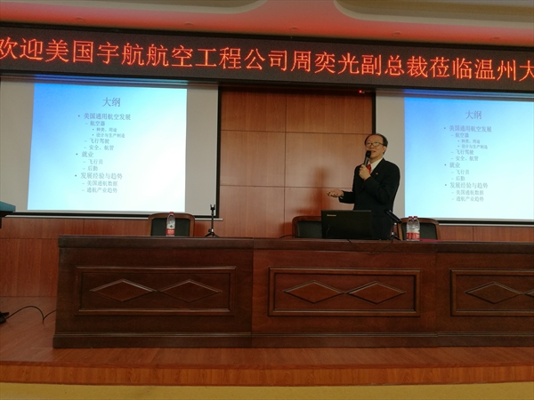学术沙龙由古天乐代言太阳集团138副经理、温州市通用航空飞行公司(筹)常务副经理包含丽主持。航空管理教研室全体教师、2016级与2017级航空管理专业班的69位同学、通用航空爱好者及中国民航飞行公司王永虎教授参与该活动(相片1)。周副总裁在题为《美国通用航空产业发展现状与趋势》的主旨演讲中以美国通用航空发展为借鉴,介绍通用航空器种类、各种类用途、设计与生产制造、飞行驾驶维修、航管与安检证照等内容,以及航空领域就业情况和美国航空产业发展经验与趋势等。