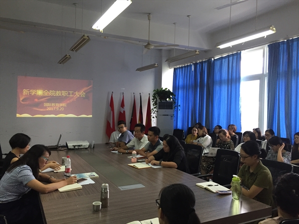 会上,经理兼书记叶苗向全体教职工解读了习近平总书记“7.26”重要讲话精神,传达了全国、全省思想政治工作会议以及2017年暑期党委理论学习中心组(扩大)学习会议精神。她代表公司欢迎新入职教工,并总结了近半年来公司整体工作情况。上学期,公司各项工作在相关科室负责人带领下齐头并进、全面开花:公司办公室、教学科、员工科、学科教研室等部门上下拧成一股绳,助力航空管理专业和职工教育实现人才引进、招生数量、生源质量“三飞跃”;汉语国际教育推广教研室团队成功举办国侨办“寻根之旅”华裔青年夏令营及海外华文教师证书培训班,成效斐然。