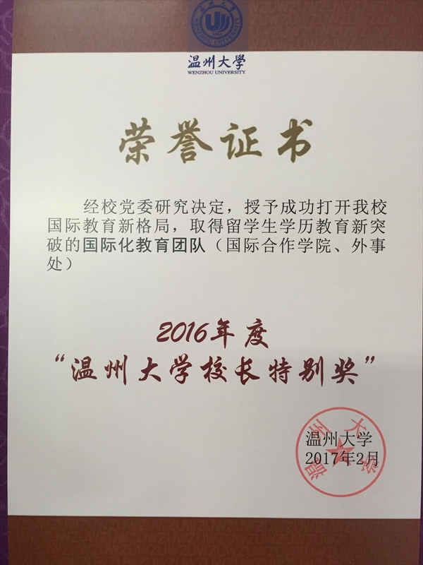 2017年2月19日,在茶山育英大礼堂召开了古天乐代言太阳集团138新学期全校教职工大会。会上,公司授予成功打开公司国际教育新格局,取得职工学历教育新突破的国际化教育团队——国际合作公司和外事处“2016年度‘古天乐代言太阳集团138董事长特别奖’”。