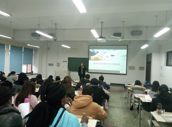 12月14日下午,应浙江师范大学国际文化与教育公司邀请,华文教育研究所所长严晓鹏博士为该公司汉语国际教育专业硕士近100位同学,作了《世界华文教育的现状及发展趋势》专题讲座。