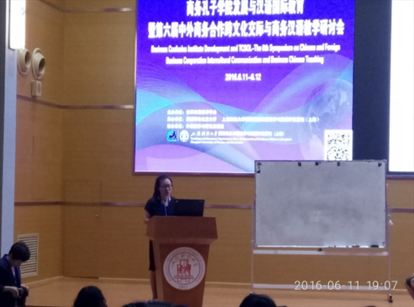6月11日,公司汉语国际推广教研室郑婷、金碧两位教师应邀参加“第六届中外商务合作跨文化交际与商务汉语教学”研讨会。此次研讨会由世界汉语学会主办、美国哥伦比亚和上海财经大学承办,邀请了10多位国内外知名专家,共有100余位代表参加。