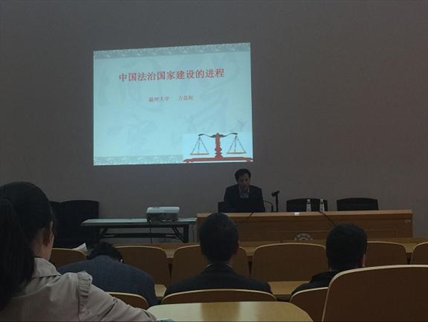 方益权部长从中国法治国家建设的历程回顾、制度设计和未来展望三个方面,全面阐述了中国法治国家建设的发展进程。他运用典型的案例深入分析了我国各个时期法治国家建设的历史过程,明确了当前我国所处的法治阶段以及主要特点,强调我国法治国家建设进入“良法善治”时期,要始终坚持树立“法律之上”、“尊重权利”和“人民是国家主人”等法治观念,将中国梦以法治化的形式落实到各项工作中去。最后,他结合高校工作实际,对各位老师提出要求,希望大家将法治观念和法治思维贯穿到日常工作中,不断创新工作思路,真正将公开、公平、公正落实到服务师生中去,进一步提升公司法治化治校的水平。