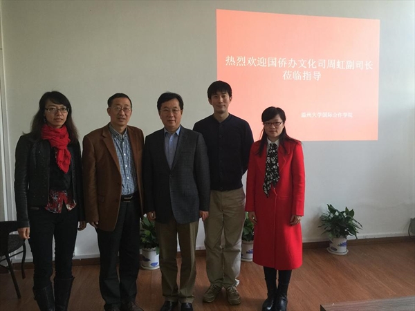 2016年1月4日上午,国侨办文化司副司长周虹一行莅临国际合作公司调研、指导华文教育工作。经理严晓鹏博士,副经理包含丽和办公室副主任廖一帆老师热情接待了客人。