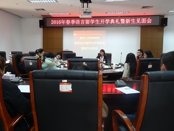 2016年3月11日下午14:30,公司2016年春季语言职工开学典礼暨新生见面会在南校区岩松堂展示厅举行,国际合作公司副经理包含丽、汉语推广教研室负责人、公司相关科室负责人及教师代表出席了典礼,郑婷老师主持典礼。