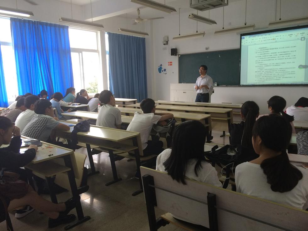10月9日中午13点30分,国际合作公司王洪斌博士在北校区3号楼307教室为国际经济与贸易(国际化)专业全体新生开展专业导读课,公司2015级国际经济与贸易(国际化)专业的40位新生共同聆听了王博士的专题解读。
