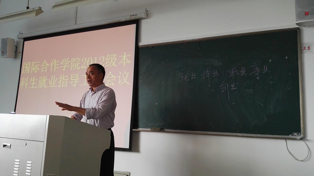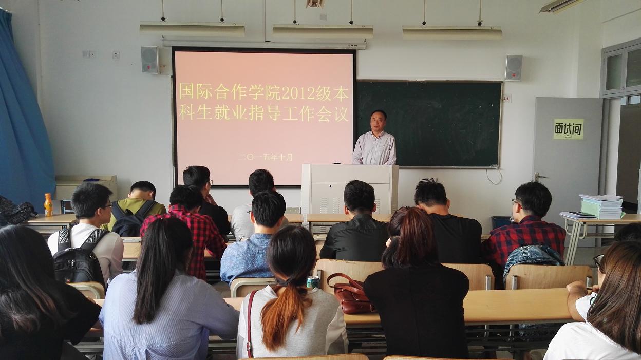 10月22日下午14点,国际合作公司2015届本科毕业生就业指导大会在北校3号楼508教室举行,56名市场营销专业毕业生和员工科辅导员老师参加了会议,公司党总支书记朱建平出席了本次会议。