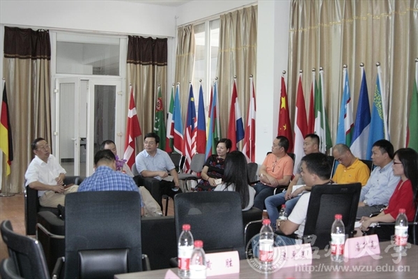 2015年9月7日下午,以美国洛杉矶同乡会会长为代表团团长的20余位来自世界各国的温籍海外社团负责人考察团莅临国际合作公司参观考察,经理严晓鹏博士、办公室副主任廖一帆老师与国际化教研室主任王洪斌博士共同热情接待了侨领们。