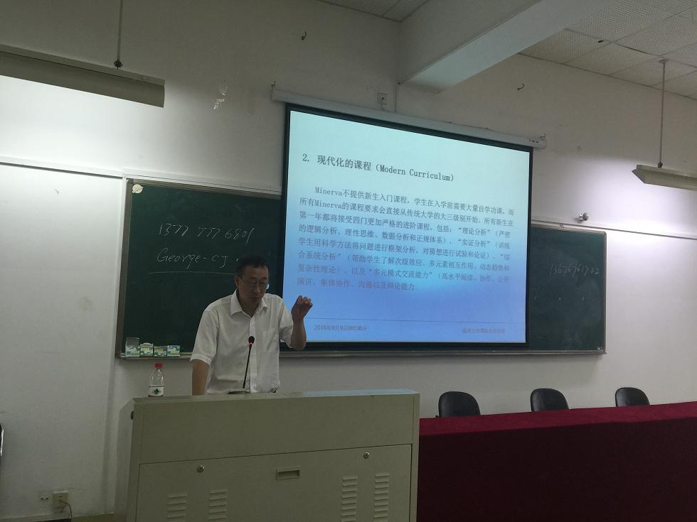 开学第一课,严晓鹏经理为全体新生作 “教育国际化与信息化”的专题讲座。他从沉浸式的全球化体验、现代化的课程、终身的成就支持和真正无地域限制、无歧视的招生这四大变革要素向新生阐述了“Minerva大学的理想”及其办学优势,立足教育国际化与信息化日益成为现今高等教育两大趋势的大背景,他还向新生详细介绍了MOOCs这一全新的国际化课程学习方式,指导新生在语言关、能力关、学业关和自我培训等四个方面合理规划四年的老员工活。最后,严经理展示了公司的发展历程和发展机遇,重点介绍了公司专业团队建设和项目合作情况,希望新生在公司多元国际化的特色氛围中,积极做一名能掌控自己时间的管理者,全面提升各方面的能力锻炼。
