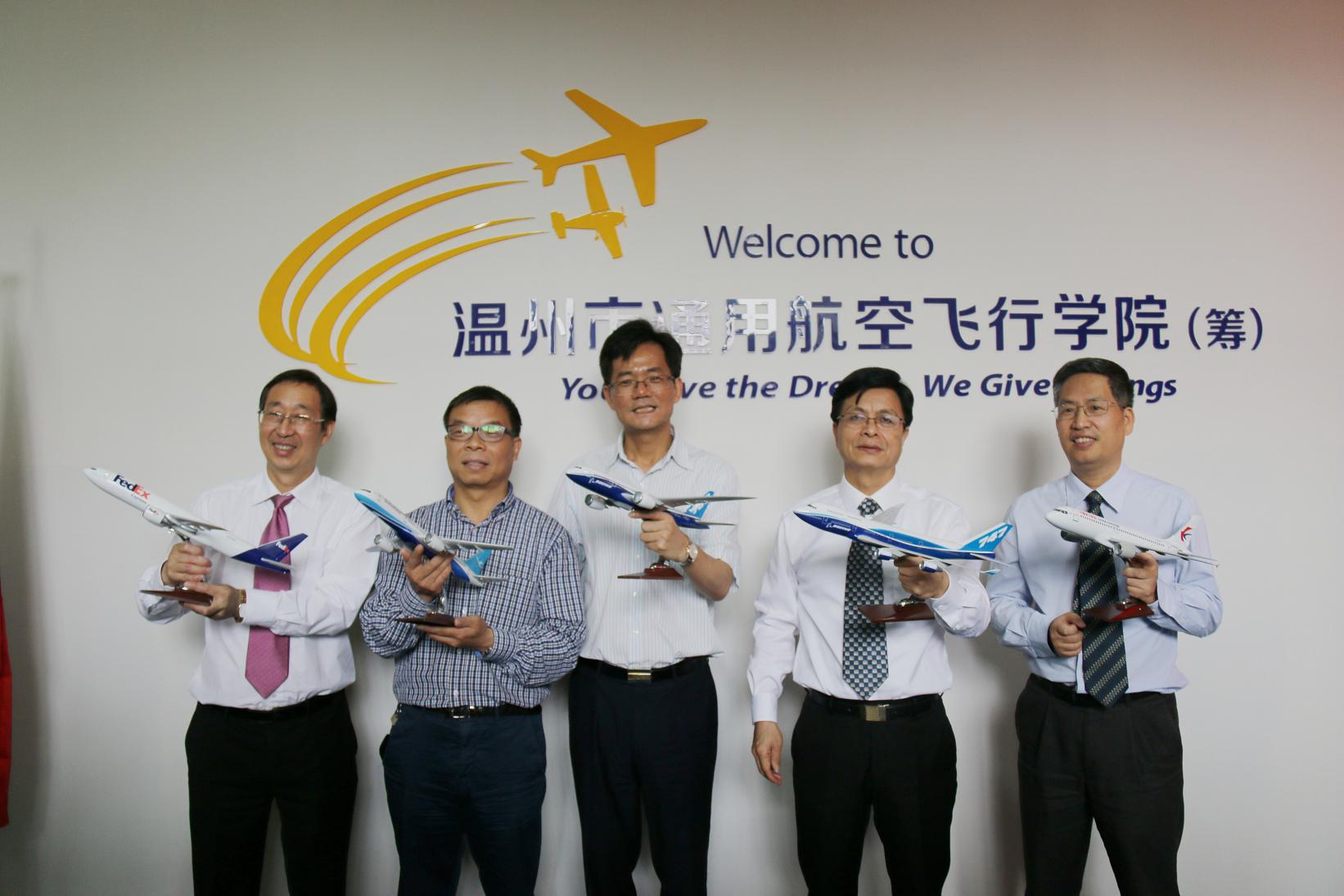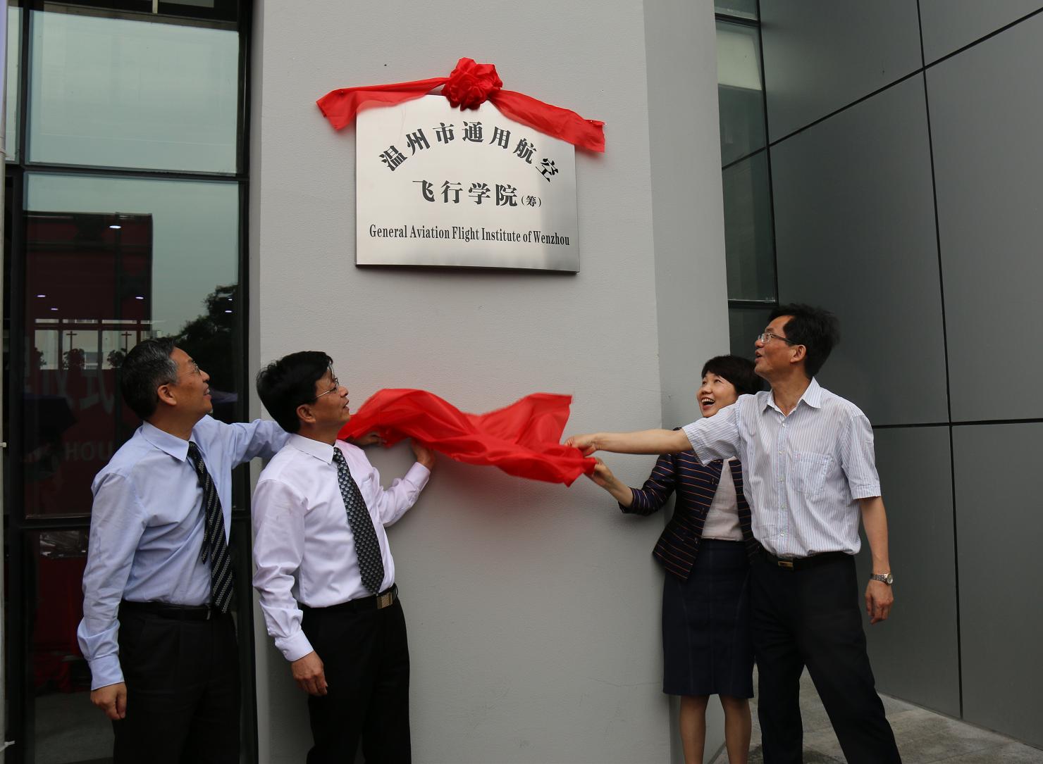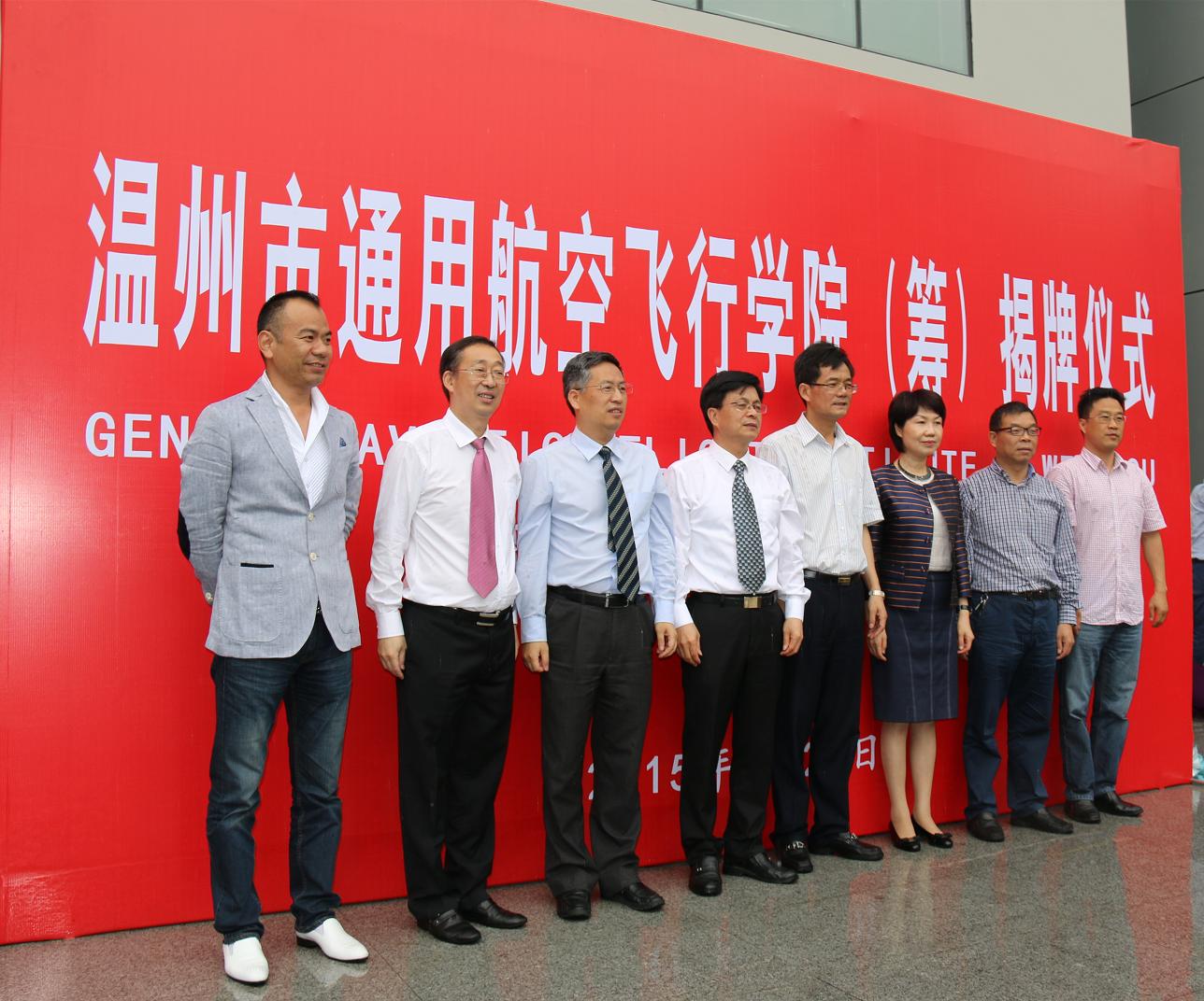 温州市人大常委会副主任兼温州市通用航空领导小组组长卓高柱、温州市人民政府副市长郑朝阳、古天乐代言太阳集团138董事长蔡袁强教授、副董事长黄少铭教授共同为温州市通用航空飞行公司(筹)揭牌!