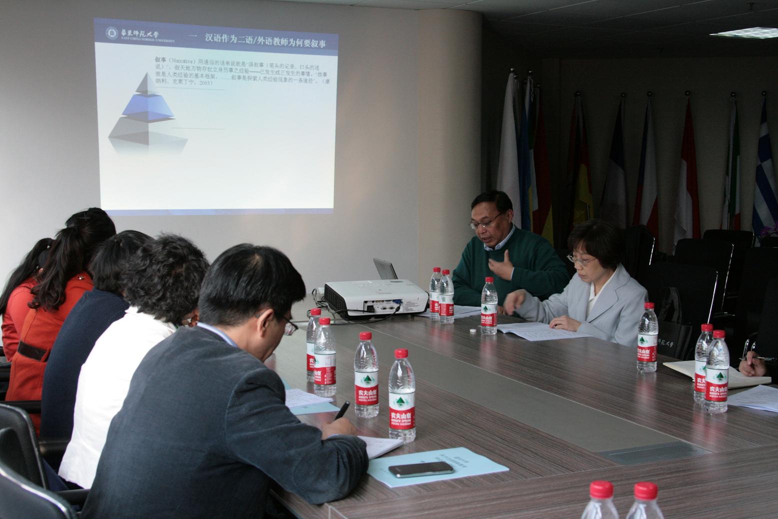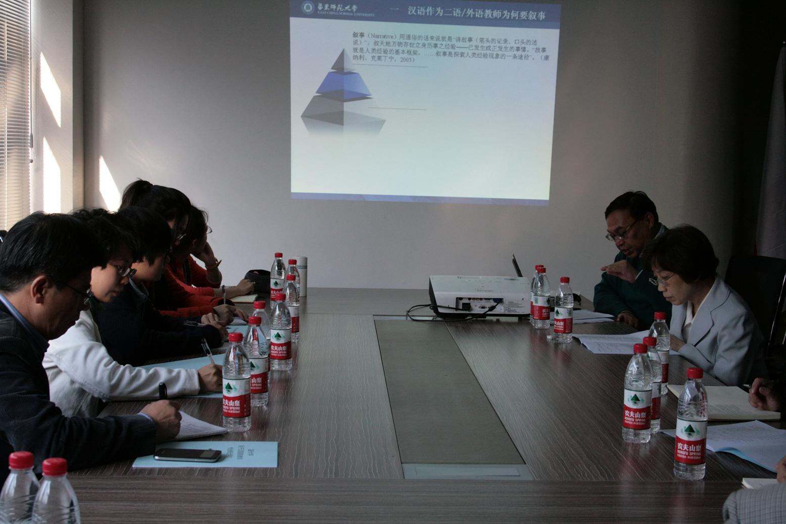 徐子亮教授作了题为“对外汉语教学法:上海高校精品课程建设”的讲座。主要介绍了作为对外汉语专业本科必修课的“对外汉语教学法”精品课程建设的过程,以及在如何改进教学方法、选编教材、推动员工科研等方面采取的措施,并展示了他们已经取得的成果。该讲座对公司汉语国际教育专业的课程建设颇有启发和借鉴意义。