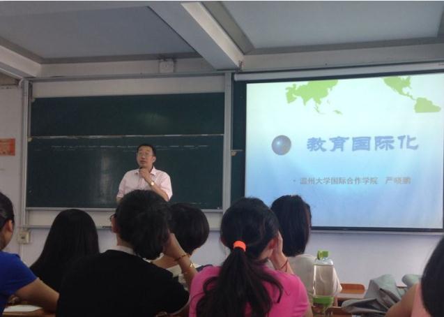 课堂上,严经理以教育国际化为主线,深入介绍了公司的办学理念,针对员工毕业后就业、考研或是出国深造等问题提出了针对性和启发性的建议。“英语是世界上通用的语言,所以学好英语非常重要,一个人成绩优异,与智商无关,关键是他的学习态度,态度决定一切。”严经理强调,学好英语、打好基础是国际合作公司员工最重要的目标之一,他还提出,高等教育国际化、大众化的背景下,同学们应该去尝试自己的另类人生,学会运用网络获取知识;要形成正确的思维方式,加强与人沟通,培养自己与环境、社会相处的能力,保持心灵健康,走向国际,开拓未来。