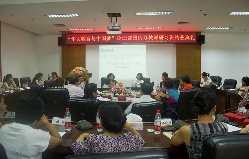 徐高春副主任在聆听了海外华文教师们的发言后,表示为大家在海外执着追求华文教育事业的奉献精神深深感动,相信有了大家的这种执着精神,海外华文教育事业的明天一定会更加灿烂。他还向在座的华文教师们提出了几点要求:第一,在思想上把华文教育与“中国梦”有机地结合起来,通过华文教育引导海外广大华裔青少年共同投身于实现“中国梦”的伟大事业;第二,继续以极大的热情投身于华文教育,为中华文化在海外的传承不懈努力;第三,希望老师们将本次培训班所学带回公司,与同事们继续消化、切磋,不断提高自身的文化素养以及教学技能,为华文教育更加璀璨的明天而努力奋斗!