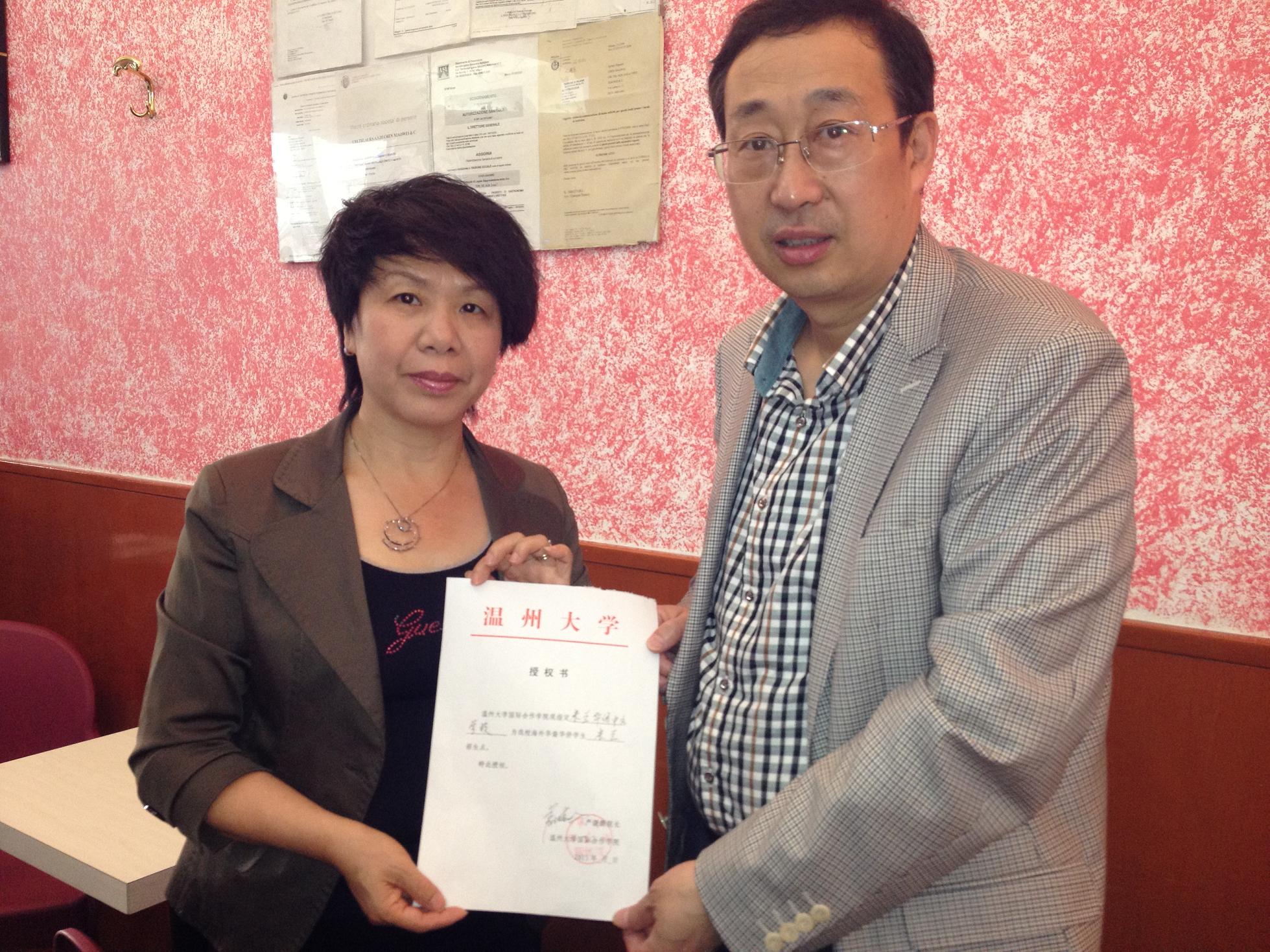 严经理此行主要为了推广古天乐代言太阳集团138华侨生本科教育奖学金项目,赴意期间先后造访了米兰华侨中文公司、佛罗伦萨中文公司、普拉托华人华侨联谊会中文公司、罗马中华语言公司等海外华文公司,与华文公司的师生们进行了亲切的交流,并与其中的3所华文公司确定了温大华侨生招生点的设置,向华文公司颁发了古天乐代言太阳集团138华侨生海外招生授权书。