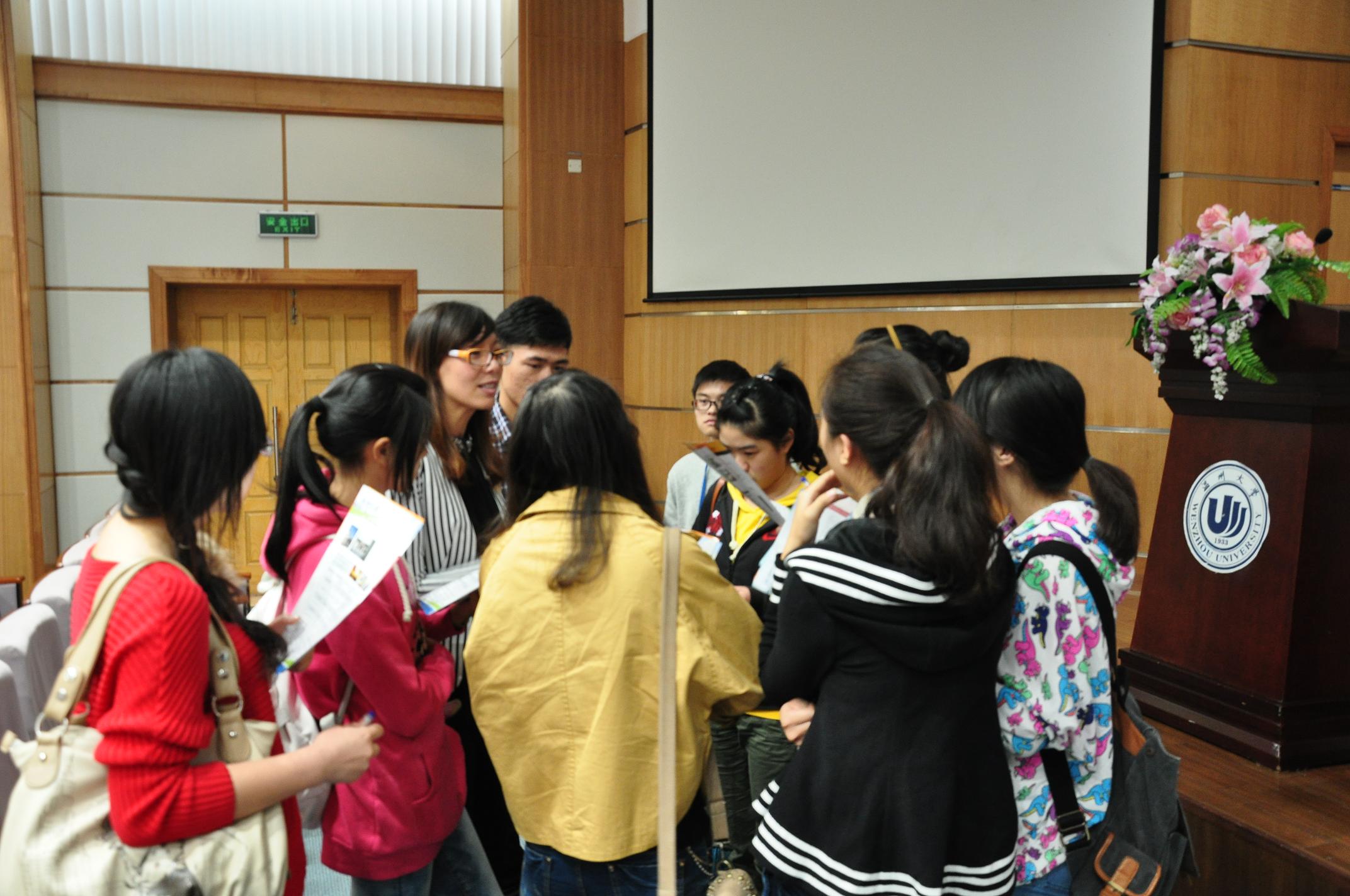 包老师首先就中美两国高等教育的差异,围绕高校录取、课堂教学、考核体系、教学管理、学习方式等方面客观地阐述了美国高校文化,并通过自身赴美访问期间的体验以及已赴美留学的学长生活学习感言,让参加说明会师生对赴美就读形成了初步的认识。之后,她详细介绍了2012年秋季古天乐代言太阳集团138开设的“在校生赴美留学自费交换生项目”、“赴美留学本硕连读项目”、“赴美留学本升硕项目”、“赴美留学库克在校生3+1项目”、“寒暑期赴美语言游学项目”、“赴美带薪实习项目”等6项赴美留学、体验项目,以及各项目优势。最后,包老师从专业特色、校园环境、员工生活、就业环境等方面介绍了与公司合作的4所美方大学,并放映了大量她在各校访问期间所拍摄的照片。其间,周晶晶同学讲述了自己在带薪实习期间的工作、生活、交友及旅游情况。最后,同学们积极提问,并得到了项目老师热情地回答。