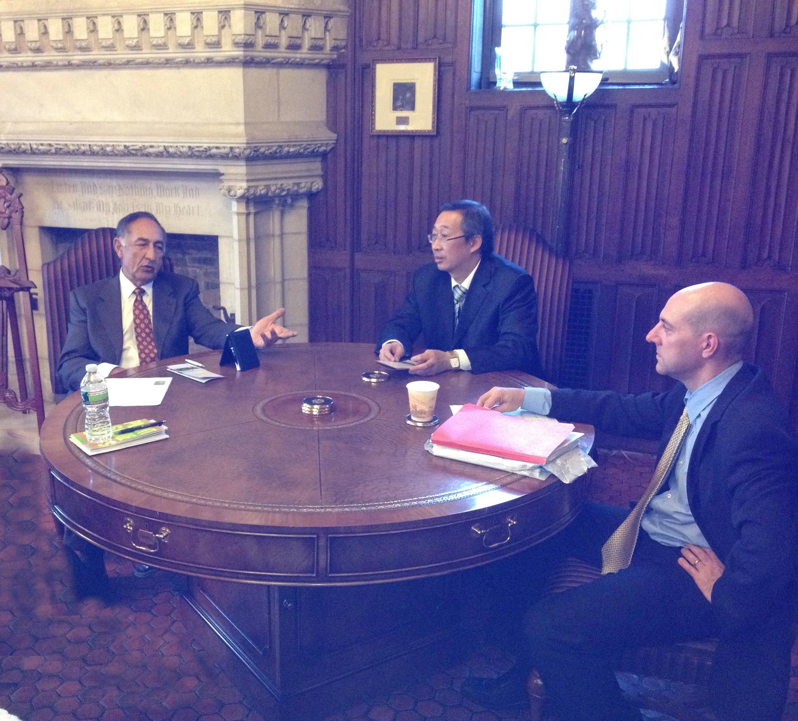 美国肯恩大学董事长达伍德·法拉希及公司部分高层管理人员与严经理进行了会谈。严经理向法拉希董事长介绍了今年8月底,以两校合作的亚洲研究项目的名义选送到校学习的11名美国职工在公司的学习生活情况;同时,双方还就亚洲研究项目的学分认证、国际化课程群建设和国际化团队培养等有关问题进行了深入的交流与探讨。