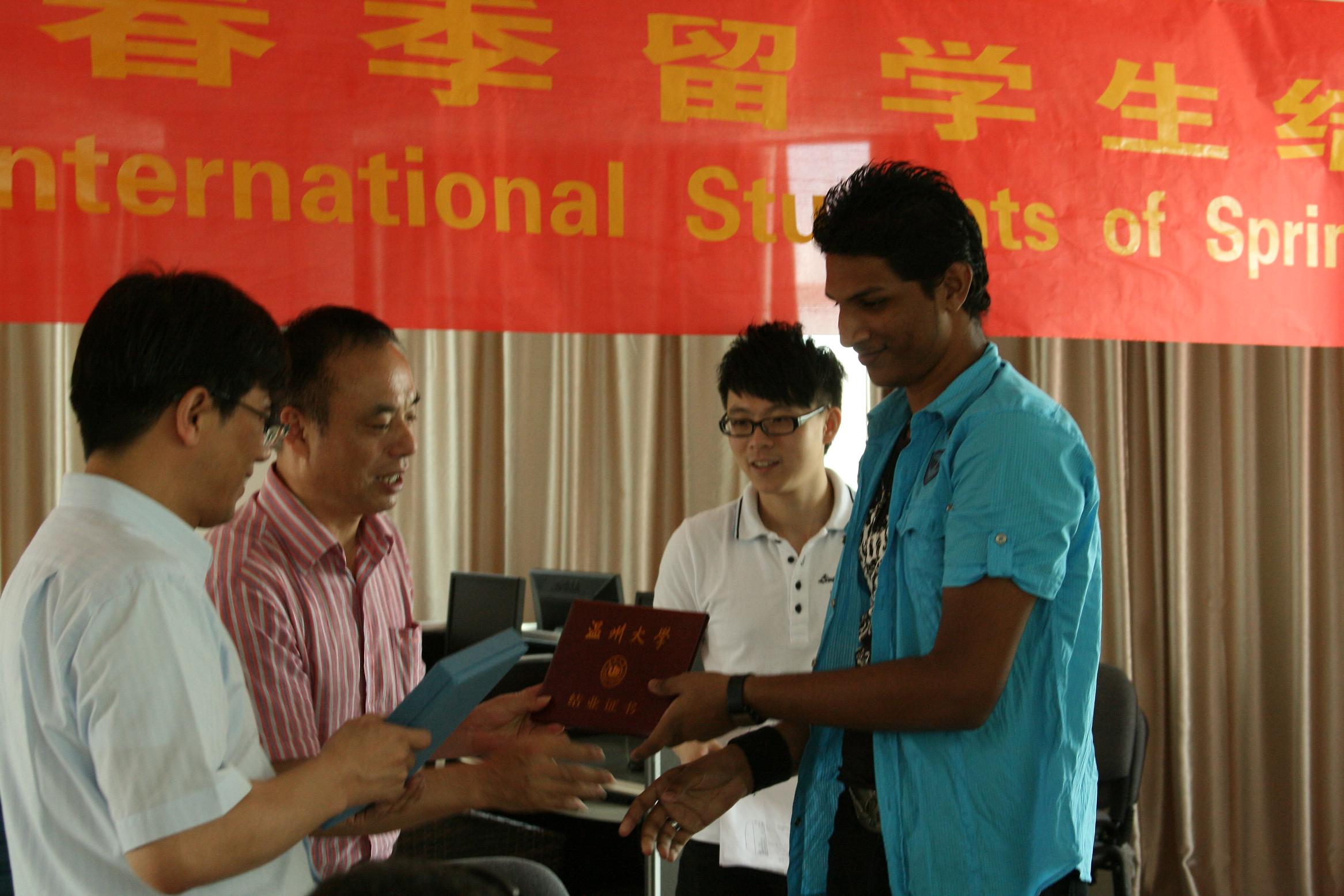 陈军副经理回顾了毕业生的学习生涯,他欣喜地看到职工们能很快地适应学习和生活,较好地学习和了解中国文化,特别是浙江温州的历史、文化。他希望职工们回国后,能成为国际文化交流的使者,促进中国文化在其各自国家的传播。