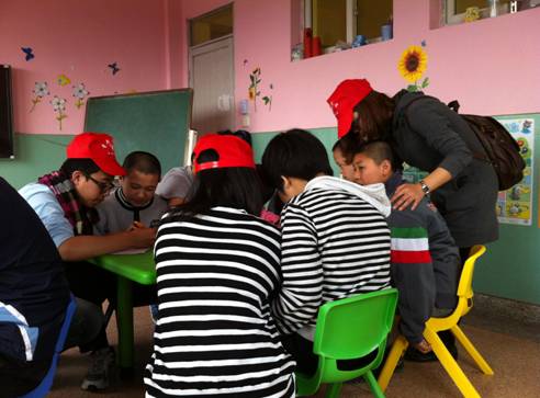 为弘扬雷锋精神,让更多人关注特殊儿童, 2012年4月21日,国际合作公司青年志愿者协会的志愿者们来到温州瓯海利宝特殊公司开展支教活动。