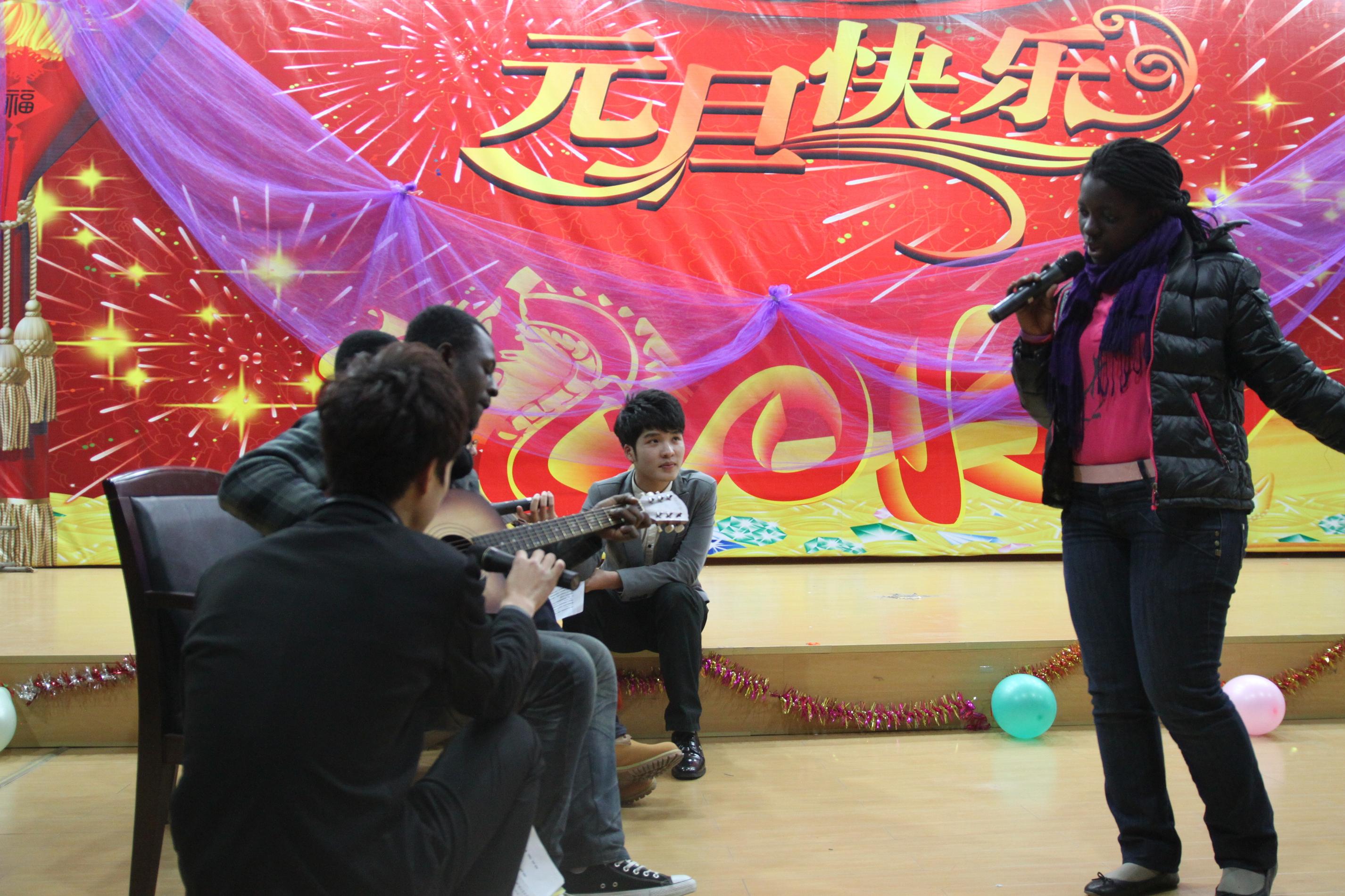 出席晚会的公司领导有公司党总支书记方建敏,公司副经理陈军。短剧《穿越》为晚会拉开了帷幕。舞蹈,唱歌,小品,晚会节目丰富多彩。教师的风采,员工的朝气,在现场得到完美的体现。女子跆拳道表演“以武取胜”;小品《爱笑》令人捧腹;张丽丽老师的葫芦丝演奏使公司同学着实感受到了艺术的魅力;外教Crumly的一首《This land is your land》以及加纳职工自弹自唱的《Happy New Year》将气氛带向高潮。