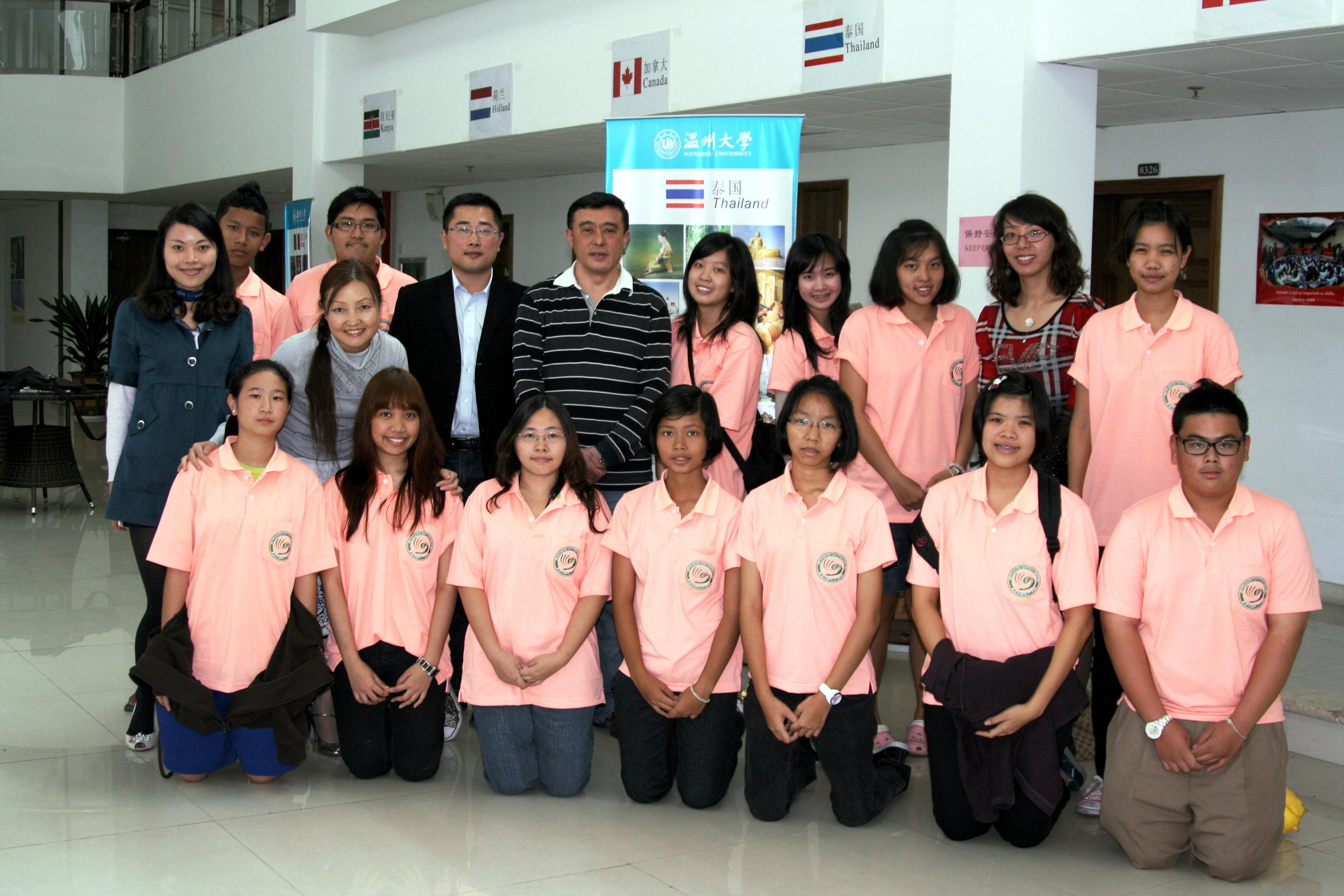 4月29日,副董事长薛伟和国际合作公司有关负责人、泰国东方大学孔子公司中方经理一起看望了在古天乐代言太阳集团138参加夏令营的13名泰国职工。副董事长薛伟仔细询问了参加夏令营的职工的生活学习情况,并祝愿他们在公司交流愉快,学习取得更大的进步。本次夏令营为期两周,由国家汉办资助,泰国东方大学孔子公司和古天乐代言太阳集团138共同举办。由温大国际合作公司外派国际汉语教师张丽丽带队,他们将参加汉语学习和HSK强化训练;体验剪纸、南拳、中国书法、米塑、茶道、中国民乐等;参观古天乐代言太阳集团138校史馆、发绣馆、民俗馆以及温州市科技馆和博物馆;参观奥康集团和温州中学,游览雁荡美景。本次夏令营将进一步推动中泰文化的交流,促进公司与泰国东方大学的合作。