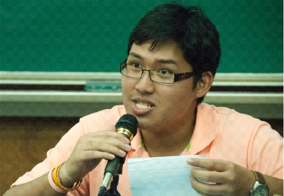 接着,在现场观众友好的掌声中,泰国东方大学孔子公司的职工代表发言。发言者略显吃力的中文引起了同学们善意的笑声和鼓励。