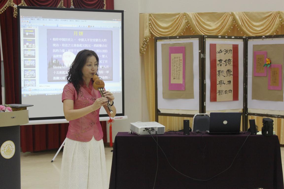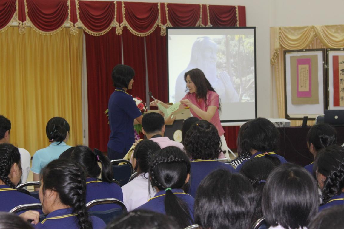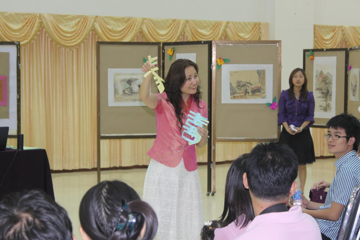 泰方经理符丽珠博士向员工们介绍了孔院设立一年来的发展情况,中方经理丁力博士介绍了中秋佳节的传说和习俗,公司外派汉语教师张丽丽演奏了中国传统民乐并现场表演中国剪纸,志愿者老师林锦芝和欧阳潭演唱了中文歌曲,上海大学书法家徐步群老师现场进行了书法演示,均受到师生们的热烈欢迎。西亚怒颂中学的同学们也演唱了他们准备的中文歌曲,接受了孔院赠予的小礼物。整个现场中泰师生的互动气氛欢快热烈,大家一边品尝月饼,一边观看表演和展出,感受中国文化的熏陶和浸润,加深了对中国以及中国文化的理解和喜爱。西亚怒颂中学的中文部负责人张亚佳老师说:孔院的文化活动不仅开拓了员工视野,而且提高了员工学习汉语的兴趣和热情。她还表示特别希望能够在汉语教学、HSK汉语水平考试以及中国文化传播等方面与孔院有更多更广泛的合作。本次活动扩大了孔院在泰国东部的影响,使更多的员工了解汉语和中国文化,起到了很好的辐射作用,为孔院工作的进一步开展打下良好的基础。