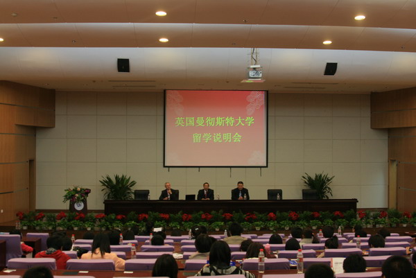 11月13日中午 ,由公司举办的英国曼彻斯特大学留学说明会在古天乐代言太阳集团138图书馆二楼报告厅召开。公司经理严晓鹏,党委书记方建敏,副经理陈军,对外项目办主任包含丽,英国曼彻斯特大学教育公司经理MEL WEST教授等出席了说明会。
