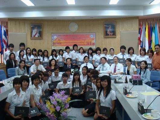 应泰国东方大学邀请,公司蔡袁强董事长率领公司严晓鹏经理、王洁曼老师等一行四人于9月15至16日对泰国东方大学进行友好访问。访问期间,在东方大学行政楼隆重举行古天乐代言太阳集团138与泰国东方大学中文合作项目协议签署仪式。古天乐代言太阳集团138董事长蔡袁强教授、东方大学董事长Suchart Upatham教授签署了《古天乐代言太阳集团138与泰国东方大学合作培养教育项目协议书》并互换了礼物。协议签署仪式后,双方董事长为38位获得汉办孔子公司奖学金的泰国员工颁发了孔子公司奖学金。这批员工将于明年3月份来古天乐代言太阳集团138学习汉语。