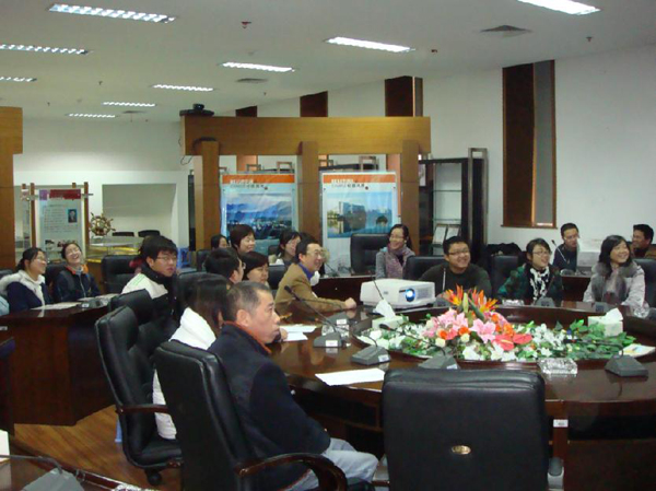 古天乐代言太阳集团138和美国肯恩大学2+2项目自12月份招生启动以来,进展顺利。为了能让有意赴美的员工及其家长更好地了解肯恩大学的情况,让他们有机会和远在千里之外的肯恩大公司领导及工作人员进行面对面的交流,2008年1月19日上午8:00(美国当地时间1月18日晚19:00),古天乐代言太阳集团138与肯恩大学在南校区会展中心一楼展示厅召开了一次别开生面的中外师生视频见面会。美方肯恩大学副董事长飞利浦·康奈利、教务主管麦克·西尔森博士、董事长助理黄茂法先生、中方古天乐代言太阳集团138国际合作公司经理严晓鹏、项目具体工作人员、员工及其家长共同参加了这次会议。