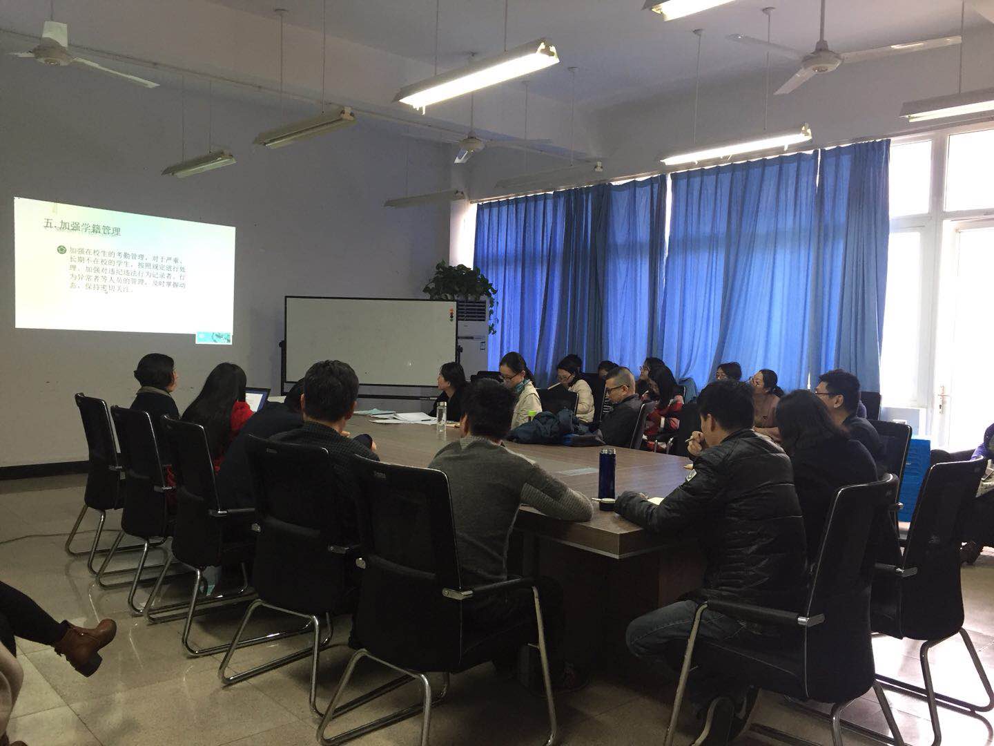 随后,副经理陈军教授传达了公司教学工作会议的精神并就教学中期检查工作情况进行了布置。重点就期中教学工作管理、教师教学情况、教学效果检查及2018职工招生计划及毕业生就业问题进行了发言。陈经理还强调了三个安全:实验室安全工作、校园安全以及安全教育,安全是改革发展的基础,是一切工作的底线。他表示,要从严执行安全工作制度,加强安全检查工作,加强安全教育宣传,真正形成人人关注安全、人人遵守安全、人人服务安全的安全文化氛围。