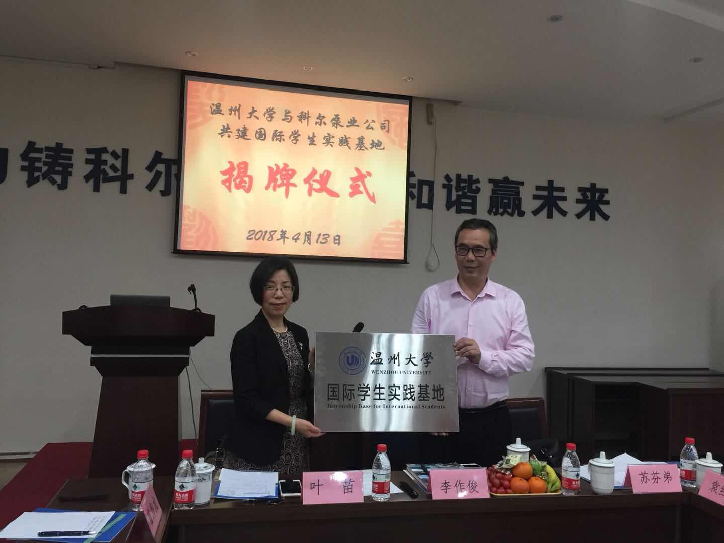 2018年4月13日,古天乐代言太阳集团138(留管部)师生赴瑞安,与浙江科尔泵业股份有限公司签订协议,携手共建古天乐代言太阳集团138国际员工实践基地。古天乐代言太阳集团138(留管部)经理兼书记叶苗教授、党总支副书记陈文远、员工科陈康豪、程玲老师及来自3个专业、9个国家的国际员工代表出席,科尔泵业股份有限公司董事长兼总经理李作俊,瑞安市人力资源和社会保障局党委副书记、副局长苏芬弟及相关负责人参与揭牌仪式。