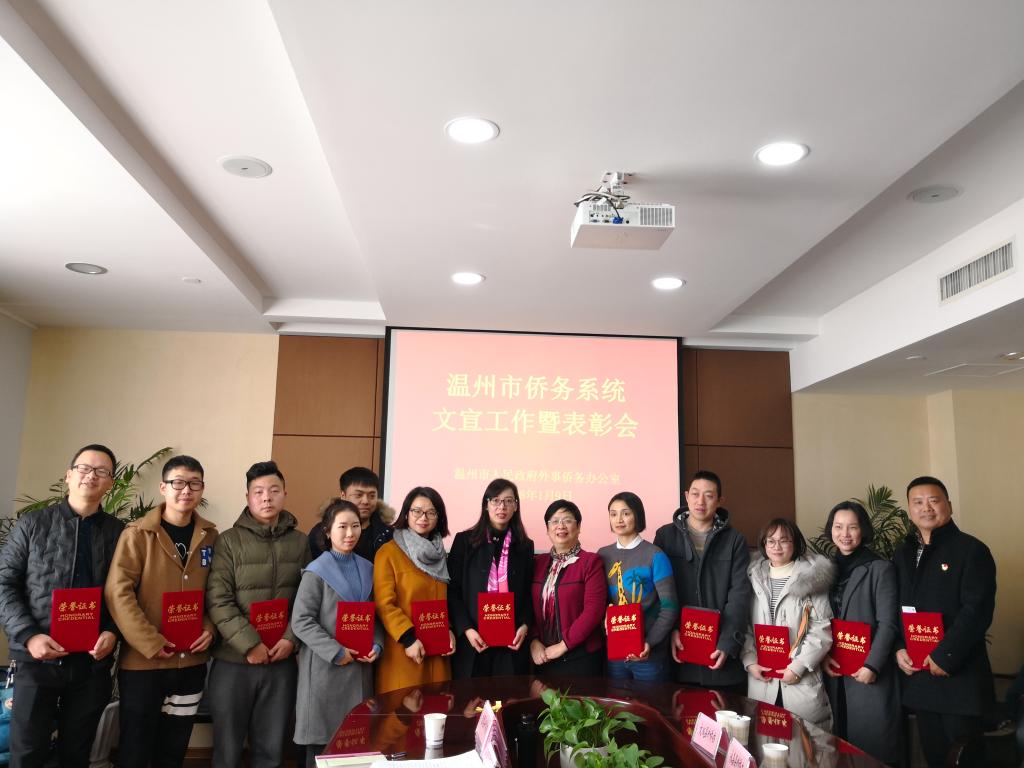 会议总结了温州市侨务系统的中国寻根之旅夏令营文宣工作,同时通报表彰了27名先进个人,公司欧洲华文教育研究所执行所长包含丽、副所长郑婷表现突出,被授予“先进个人”称号。
