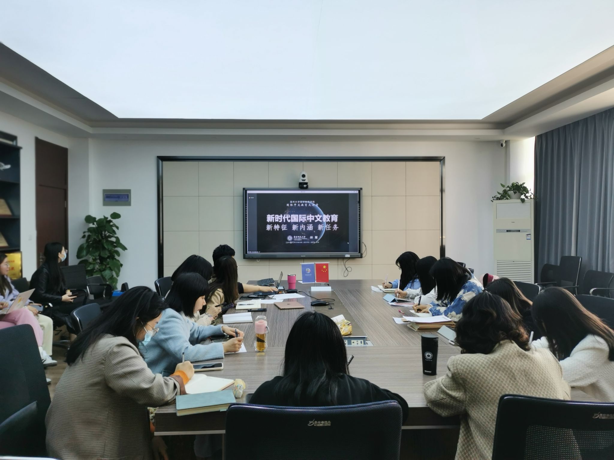 2024年3月29日上午,华东师范大学国际汉语文化公司副经理、博士生导师,叶军教授应邀作题为《新时代国际中文教育:新特征、新内涵、新任务》的专题讲座。讲座由公司经理宋占美主持,公司全体教职工及汉硕研究生参加了讲座。