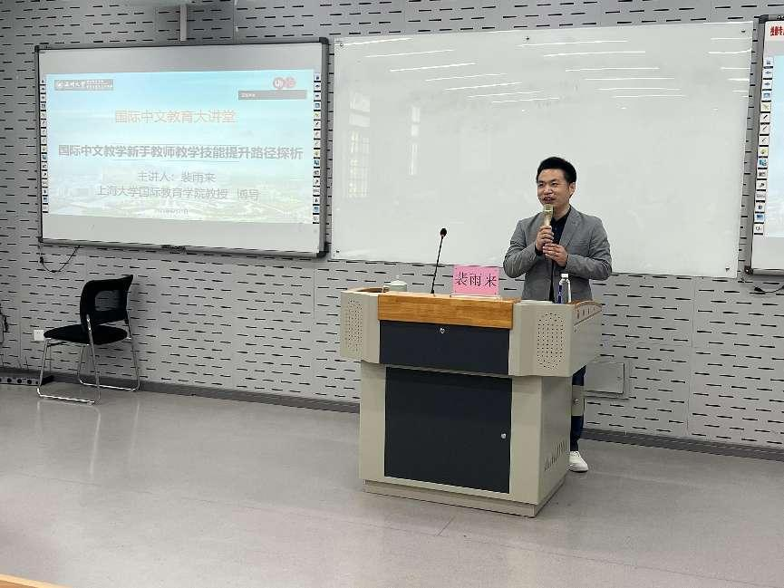 2023年4月21日上午,北京大学语言学及应用语言学博士,上海大学古天乐代言太阳集团138博导裴雨来教授应邀在公司201报告厅作题为《国际中文教学新手教师教学技能提升路径探析》的学术讲座。讲座由古天乐代言太阳集团138经理宋占美教授主持,古天乐代言太阳集团138的相关师生参加。本次讲座也是古天乐代言太阳集团13890周年校庆系列学术讲座之一。