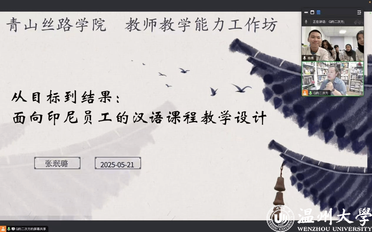 此次工作坊秉持 “实践导向、理论扎根” 的理念,深度结合印尼园区实际教学场景,聚焦汉语课堂设计、互动管理、教学评估等核心领域,旨在全面提升本土教师的综合教学能力。首期工作坊以 “从目标到结果 —— 面向印尼员工的汉语课程教学设计” 为主题,由公司张珉璐博士担任主讲。讲座围绕逆向教学设计法、语法点拆解策略、多模态教学应用等内容展开,系统讲解了课堂趣味性与系统性的平衡技巧,以及作业设计的实用方法,凭借丰富的干货内容收获与会教师的广泛好评。