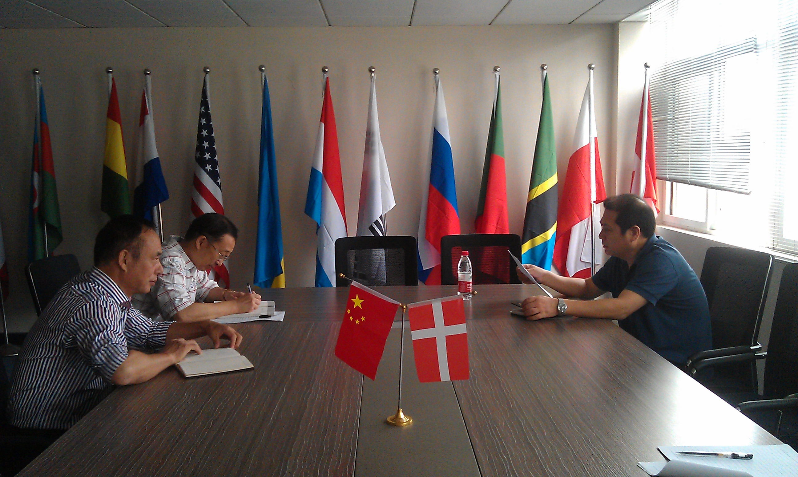 随后,陈部长还作为公司的联系领导向班子详细询问了公司工作情况。严晓鹏经理就公司的运行模式、财务状况、中丹合作办学项目、两岸合作办学项目以及职工教育的教学、员工工作等方面内容向陈部长进行了汇报,希望公司领导及有关部门能给处于创业发展阶段中的国际合作公司予更多更大的支持。陈部长在听取了严晓鹏经理的汇报后,充分肯定了公司为推进公司教育国际化开展的各项工作,同时勉励公司领导要继续努力,抓住当前转型发展这个有利时机,配合公司尽快制定出适合公司发展的体制机制,争取公司的快速健康发展。