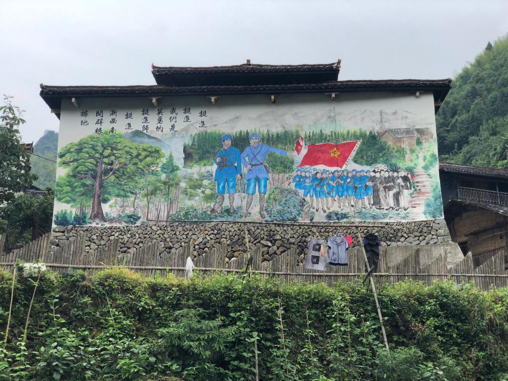 在阵阵颠簸之中,车子穿过坑坑洼洼的山路,到达地势险要的安岱后村。全体党员参观了安岱后革命遗址,重走红军桥、参观了红军主会场、粟裕、刘英故居等10多处革命遗址,感受“浙西南革命根据地纪念碑”的庄严和敬意。