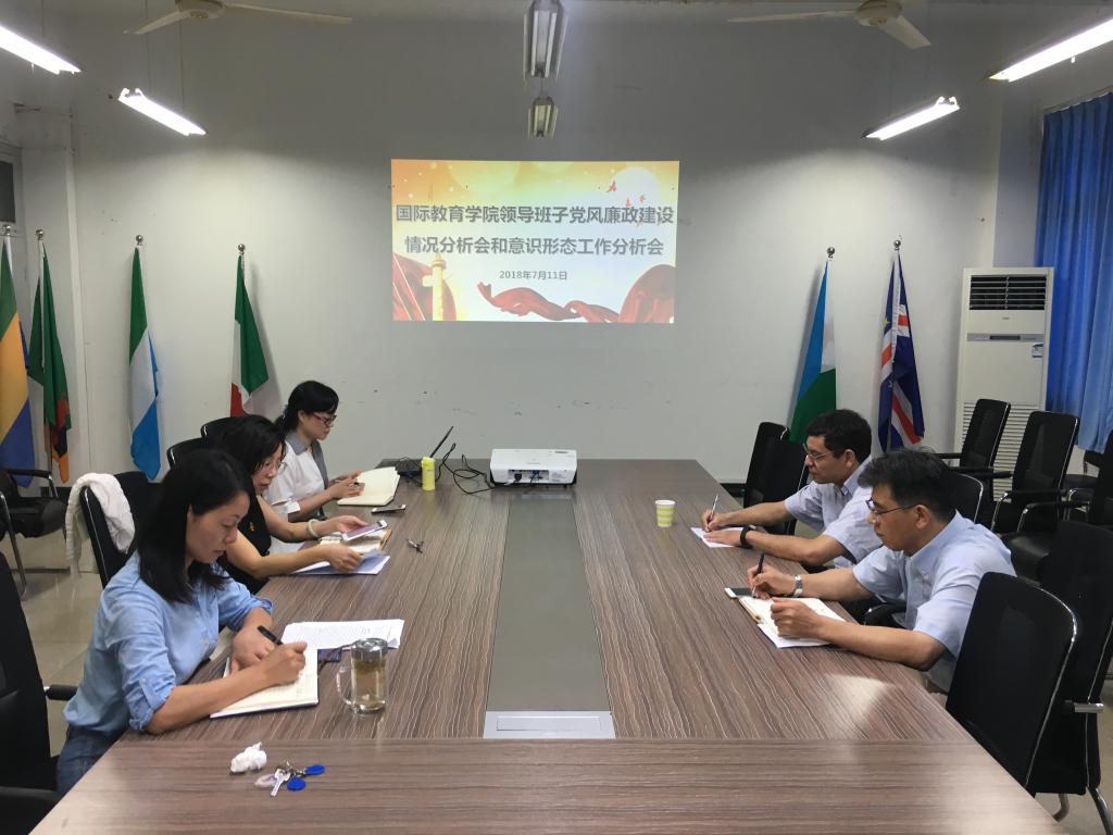 2018年7月11日上午,公司领导班子召开2018年上半年党风廉政建设情况分析会和意识形态工作分析会。会议由公司党总支书记叶苗主持,校纪委委员张一力教授、公司领导班子成员、党总支组织委员参加了会议。