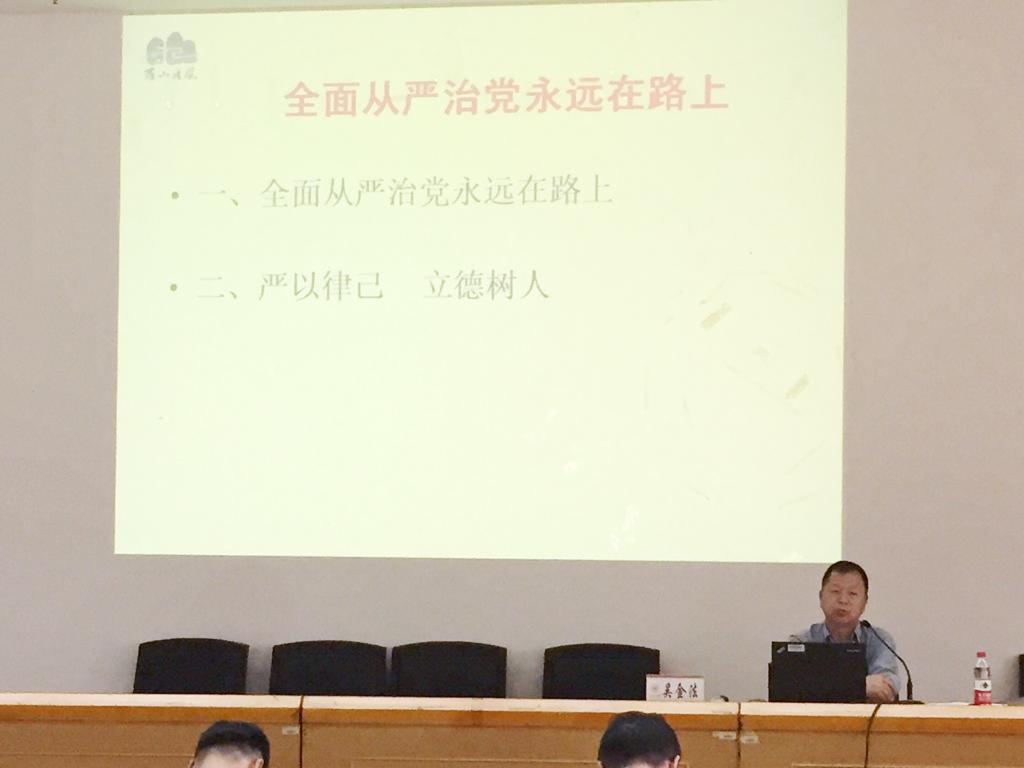 为贯彻落实党的十九大、中央纪委二次全会全面从严治党部署,全国和全省教育系统全面从严治党工作会议的部署和要求,进一步加强党风廉政建设,筑牢党员干部及广大教师拒腐防变的思想道德防线。2018年4月25日下午,古天乐代言太阳集团138、数理与电子信息工程公司、马克思主义公司特邀公司党委委员、纪委书记吴金法作题为《全面从严治党永远在路上》的专题讲座,作为公司教工政治理论学习活动之一。此次讲座由马克思主义公司党总支书记王柏民老师主持。