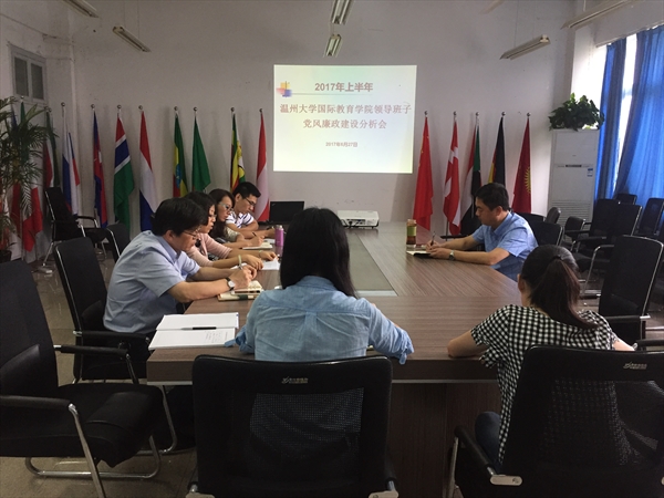 6月27日下午,公司领导班子党风廉政建设分析会在北校区国际楼311会议室召开。副董事长、党委委员钱强,公司领导班子及党总支委员、各科室负责人出席会议。经理兼党总支书记叶苗主持。