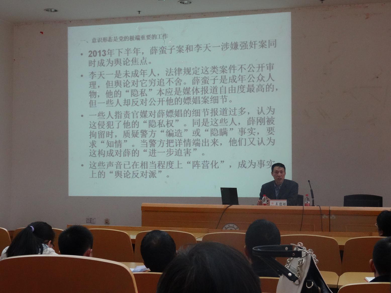 牟德刚的报告深入浅出,重点突出,并结合大量新近和身边的事例,使聆听报告的教职工深受启发教育,增强了意识形态的敏感性。接下来,四个公司将继续联合举办各种讲座,深入学习学习习总书记系列讲话、十八届三中四中全会精神,加强师德师风教育,提高全体教职工的思想政治觉悟和理论水平,为公司新一轮的改革发展提供强有力的思想政治保障。