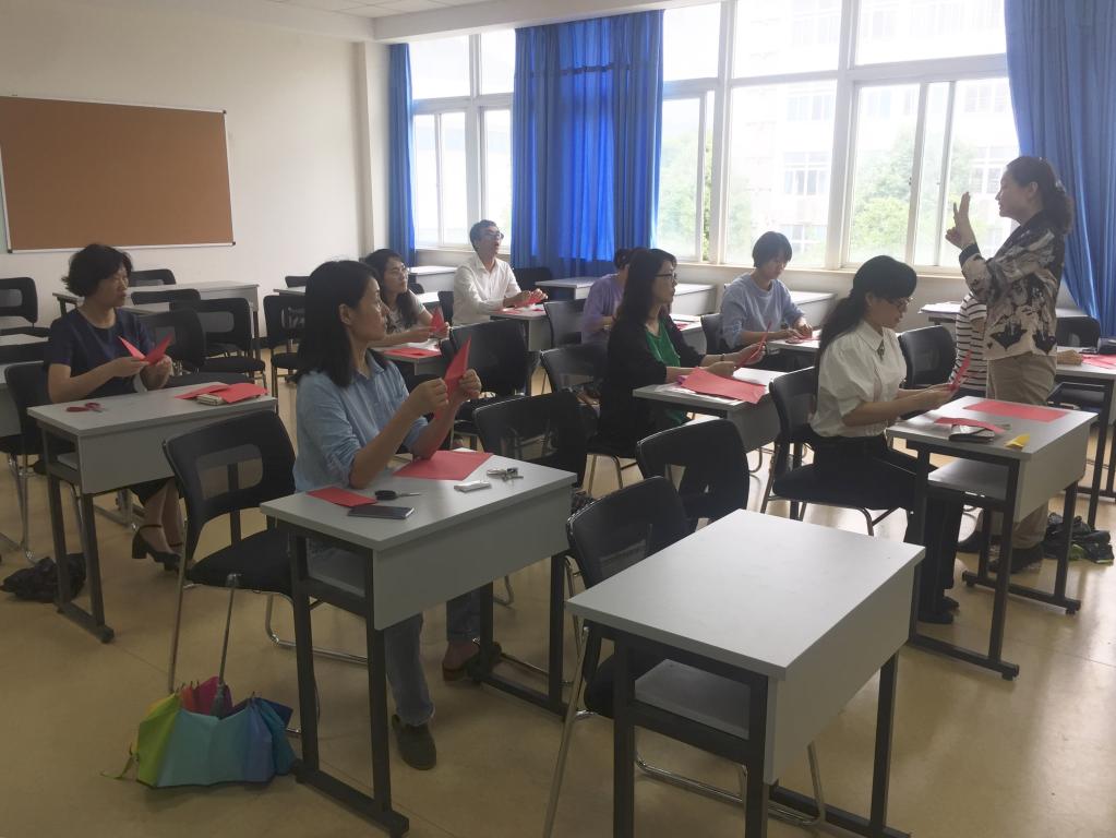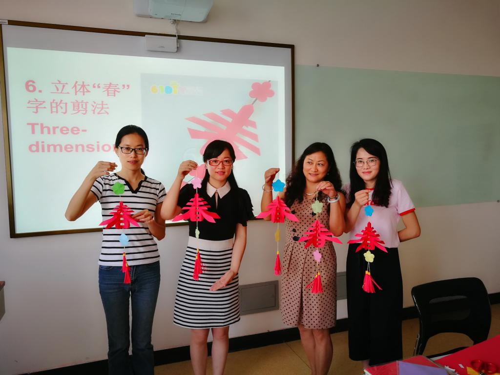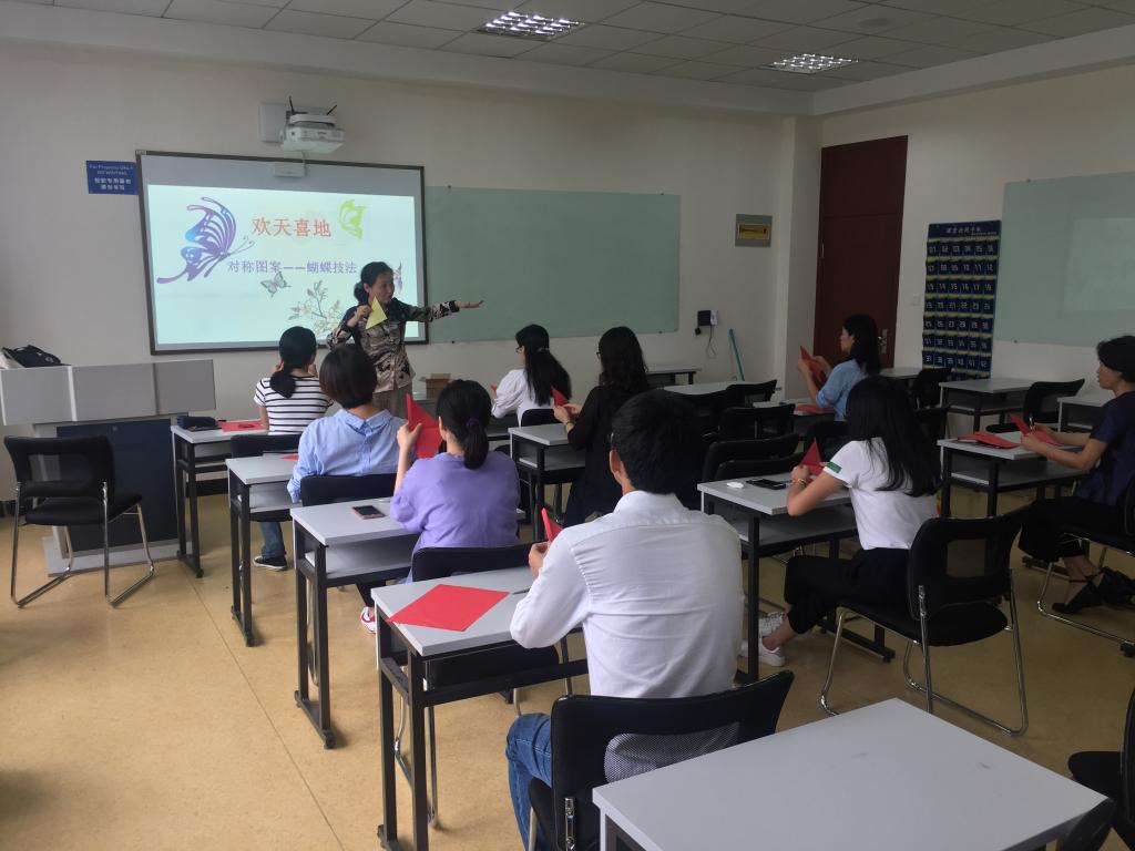 一把剪刀一张纸,双指之尖玩转一纸乾坤,方寸之间尽显无限创意。课上,张老师不仅带领老师们领略剪纸艺术这一中国民间最古老艺术的悠远历史和独特魅力,同时手把手地教老师们如何折纸,构图,裁剪,用剪刀将纸剪成各种各样的图案,如窗花、门笺、墙花、灯花等。