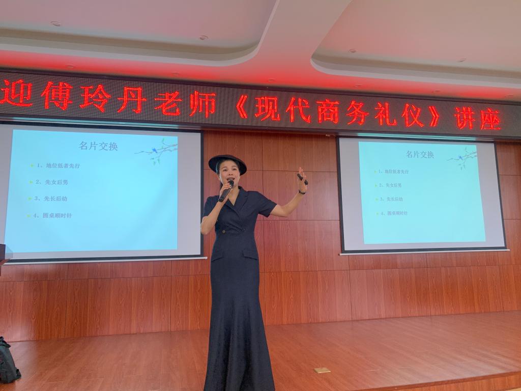 “足容重,手容恭,目容端,口容止,声容静,头容直,气容肃,立容德,色容庄。”出自礼记的君子“九容”,彰显着我国千年礼仪文化的源远流长。院工会特邀请国家A级形象礼仪讲师傅玲丹于203报告厅作《现代商务礼仪》讲座。经理叶苗、副经理包含丽和全体教工参加讲座。讲座由包含丽副经理主持。她表示,气质修养和仪容仪态对教工十分重要,院工会希望通过礼仪讲座,能全面提升教职工的个人形象和礼仪。