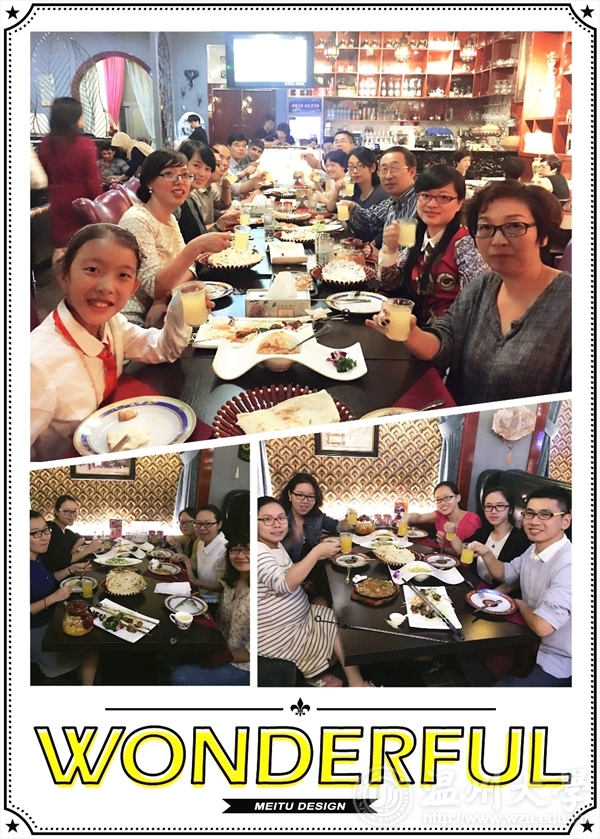 为了让公司教职工在本学期紧张的工作节奏中放松心情,体现公司多元文化交融的工作、学习氛围,近日,国际合作公司工会特别组织了中外教工在阿拉伯餐厅聚餐,并参加了由飞行公司和公司工会共同组织的,主题为unique clothes的language lover club沙龙活动。