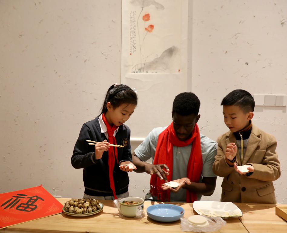 结对仪式后,小朋友的家庭与国际员工们展开分组活动,每组家庭带领一名国际员工体验自家的中国年,有的前往会展中心参观非遗年货展品尝麻糍、麦饼等当地美食,观看活字印刷术、细纹剪纸展览。有的漫步在历史文化街道五马街品尝麻花、冰糖葫芦等传统小吃,有的到永昌堡感受历史文化,欣赏古代建筑。有的则穿梭在温州的大街小巷体验最接地气的温州年。不仅如此,还有的小员工家庭与国际员工一起在家里包饺子、品茶道、学说温州话、挂春联、画面具等,他们把自己独特的过年方式展现出来与国家员工一起分享。来自尼日利亚的NOAH JUDE说,“中国有着丰富多彩的文化,这次活动让我了解了绘画、书法等传统文化,还学习了如何包饺子,这给了我一次了解美丽的温州文化和温州人的宝贵机会。”